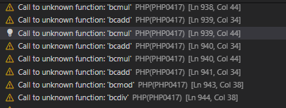 JakubMisek willslade thank you for the question. Please add the following to your .vscode/settings.json: { "php.stubs": { "*", "bc" } } or using the associated code action: