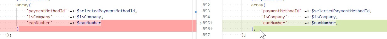 Ronni Hi I have to edit a lot of php files and wanna enable auto format on save. I am wondering if this closing , is correct and if not where to disable without disable adding , on closing on the line above?