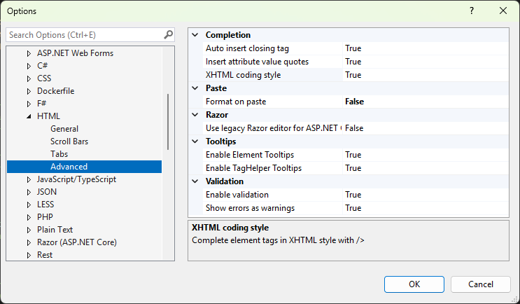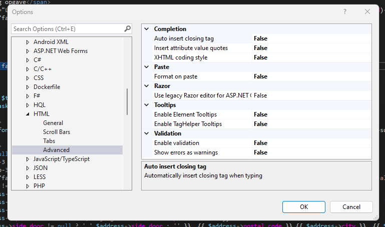 Nickidotdk You're right, no settings I've tried so far have any effect on this. However for me, it always popups completion only after typing the < character.
