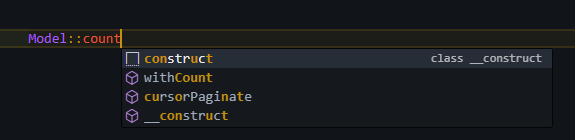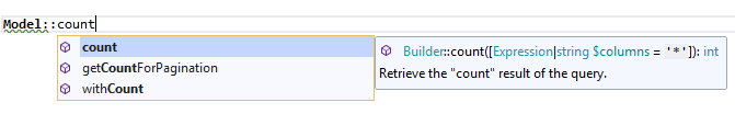 It would be nice to see the following => for example, when typing protected, IntelliSense suggests which protected properties of the model are reserved in Laravel. And the full set of properties is available in the documentation (https://laravel.com/docs/10.x/eloquent).