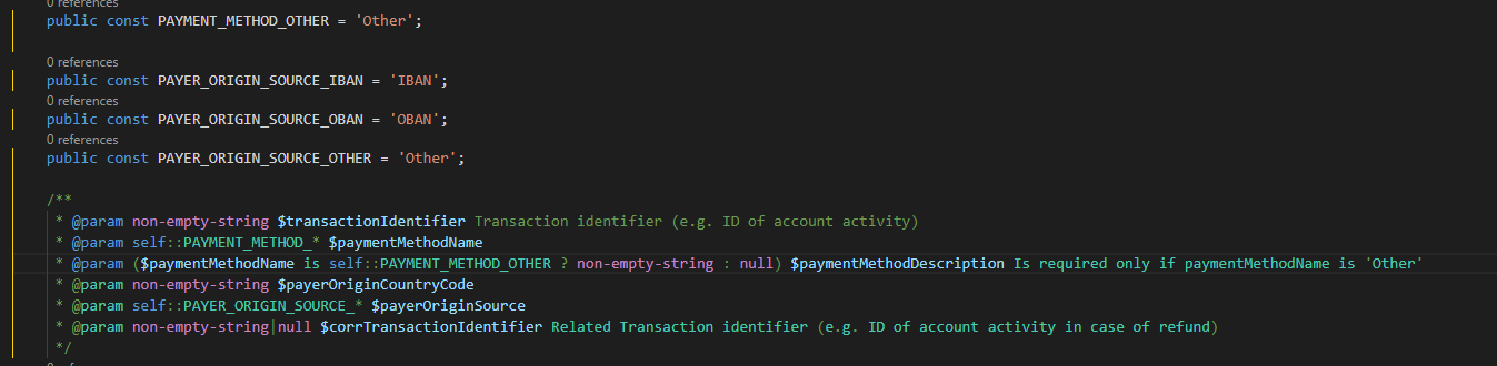 Internally, we do handle the conditional param type (currently, we would treat your sample as string|null).