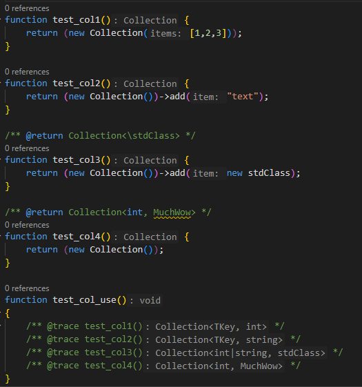 EDIT: It would seem writing /** @return Collection<int, MuchWow> */ DOES work when iterating like in my example, however it "seems" a bit wrong for a documentation standpoint.
