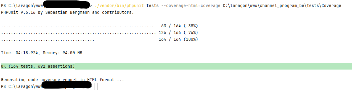 EricaLira Hi, I run my unit tests with the coverage, but I get this and it never says "Done" after it. It just pops the command line back up. Can someone help?