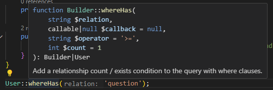 I think php tools does not parse this part of Doc correctly. although it seems to appear a lot on laravel