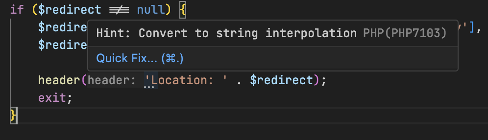 JakubMisek JohnOhl Thank you for the question! Yes, you can disable any diagnostic/suggestion with the setting below (vscode's settings.json file) "php.problems.exclude": { "/": [7103] }