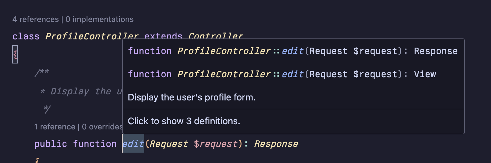 In this case, when it's obvious, we should show just the single definition - will be fixed.