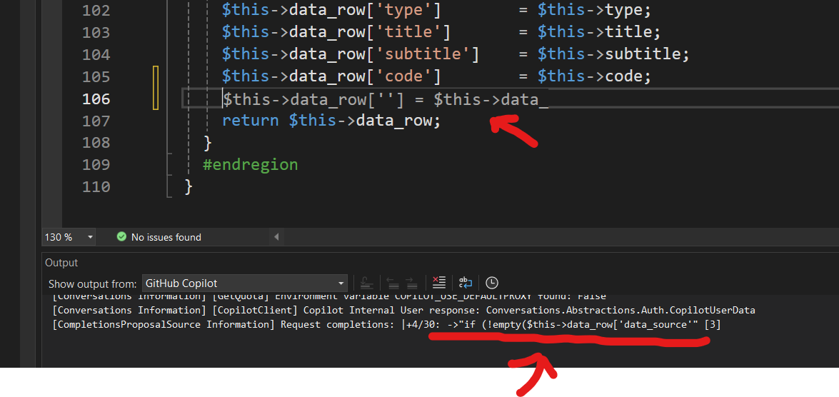 I think there is a difference between AI Inline suggestions and GitHub Copilot - this setting in PHP Tools should be disabled for GitHub to take over. When I enable the setting in PHP Tools, suggestions from GitHub are COMPLETELY different from those shown in gray text in code. Is it possible that VS chang