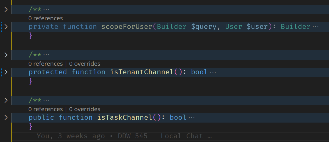 StuardoRodriguez I see the private unused methods are dimmed, but only private methods. That's not the case for protected nor public methods, even if we can see there are 0 references to them Can we dim private and public methods too? Thank you