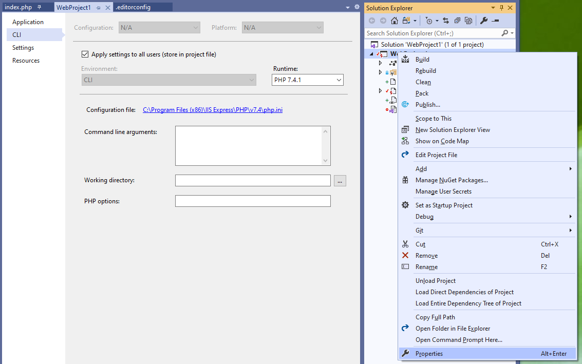 So close, it wasn't the php.ini file issue, it was that the upgrade of phptools changed the php runtime engine it was referring to. I had to reset it to the PHP I had installed and the same one IIS was pointing to (as it worked in IIS, but not in phptools, I just didn't realize where VS was getting this setting from. Update the settings. (Alas, I have no CLI tab in mine, it was under settings in my case), and it was server /runtime which was incorrect.