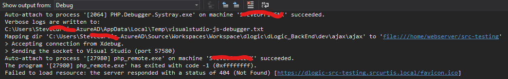 srcurtis Here is the output on debug/run: I'm happy to send you the phpproj file but would prefer not to post publicly. Please advise.