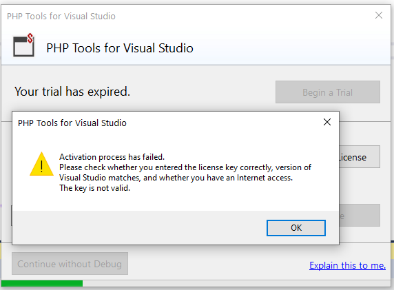 info1 I bought a license: PHP Tools for Visual Studio Code - 1yr Individual Subscription. But at the time of entering the code in the debug window of the project it tells me: activation failed. Can u help me?