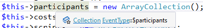 foreach ($this->participants as $participant); // $participant is mixed, not Participant