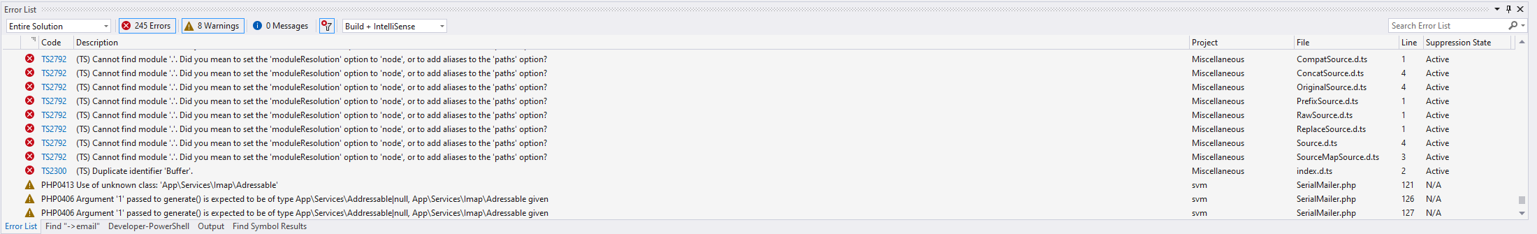 MarcHenderkes After restarting VS a few times the errors went away, but they should never be listed in the first place.