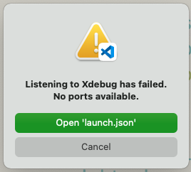 Listening to Xdebug on port 9000 failed: Error: listen EADDRINUSE: address already in use :::9000