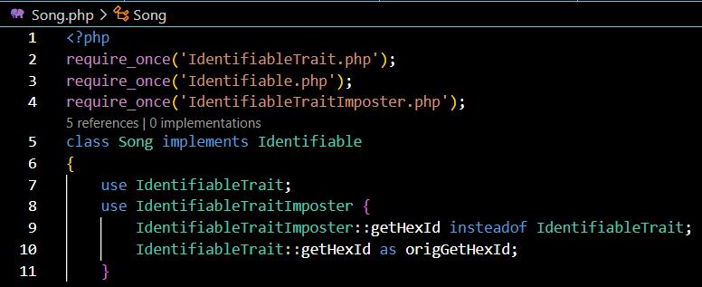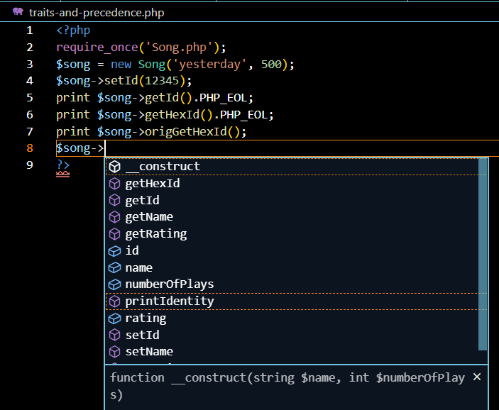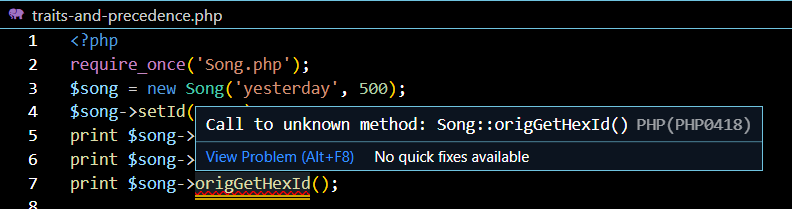 Finally, when I run the traits-and-precedence.php file, it runs with no errors, and the output is exactly as expected.