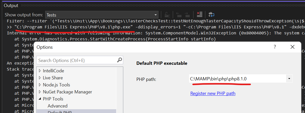 It certainly didn't help that the PHP settings it's very obvious what instance of php it's set for, but in the project properties it's hidden under "Built in web server". That could perhaps be streamlined a bit, but apart from that, thanks again - it's sorted :-)