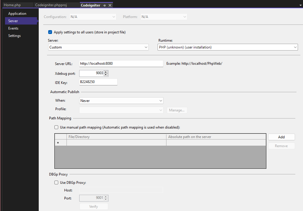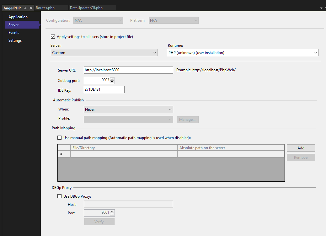 If you really want to debug it as CLI, or you have other server already setup, then "Custom" is the way to go. Just make sure Server URL is setup before pressing F5