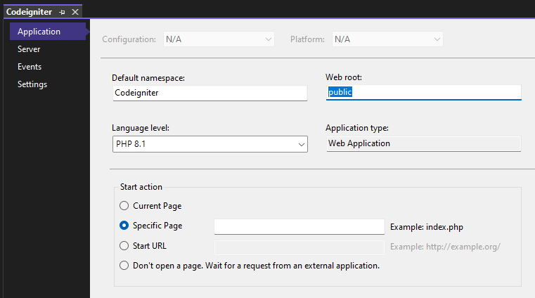 Make sure that web root is set to public, you would see it in the Solution Explorer as a blue icon instead of folder.