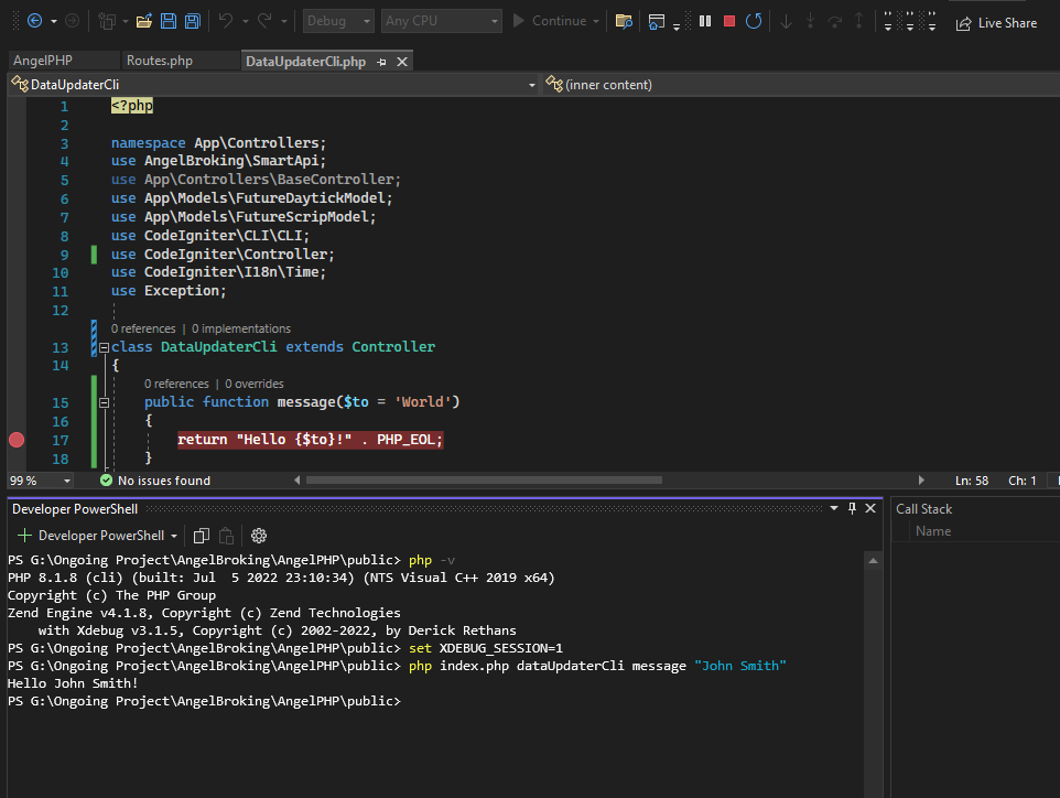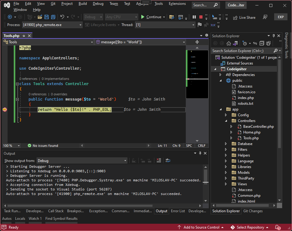 Than you can set the server as PHP Build-in server and place a breakpoint into your controller. Then press F5.