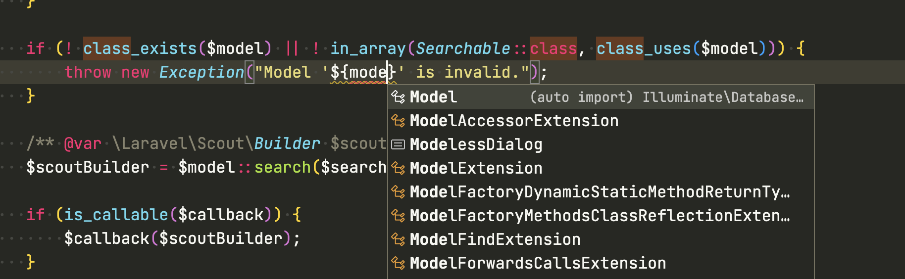 d8vjork $myVariable = 'hello world'; "This is my $myVariable"; // this shows variable autocompletion! "This is my ${myVariable}"; // but this doesn't :(
