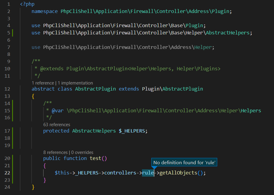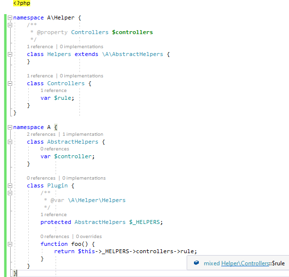 PHP Tools is able to resolve myPropertyA (loop is expected) but not myPropertyB.