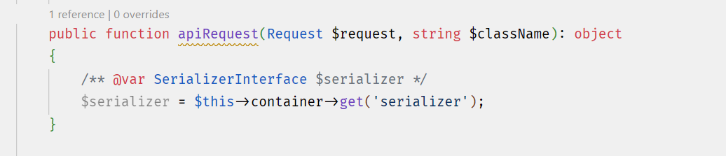 Unfortunately, PHPTools doesn't recognize it. Worse, if I start typing /** to start a one-liner to cast with @var, it starts a multiline docblock comment, indented and all right there in the function?? It's quite annoying to have to undo that scaffolding again.