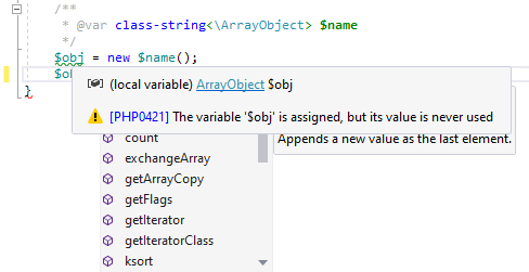When we use a variable to instanciate a class, we can use the class-string type to help the resolver to retrieve the right type.