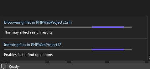 I opened the same php project on a different computer with Visual Studio 17.4.3. It completed the “Discovering files” task in 12 seconds and the “Indexing files” task in 18 seconds.